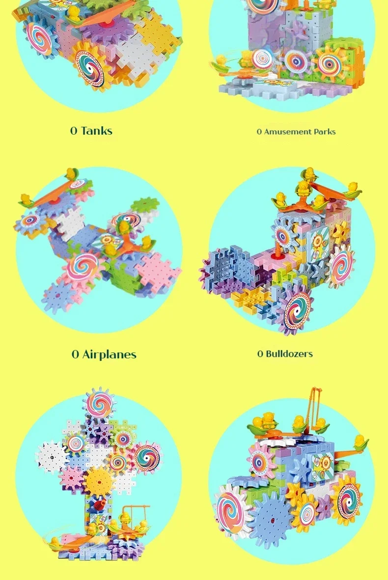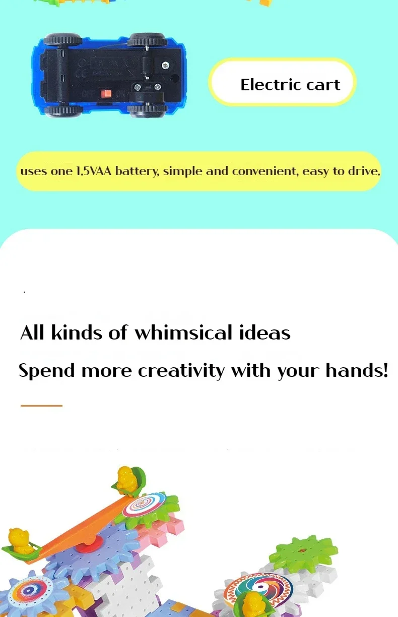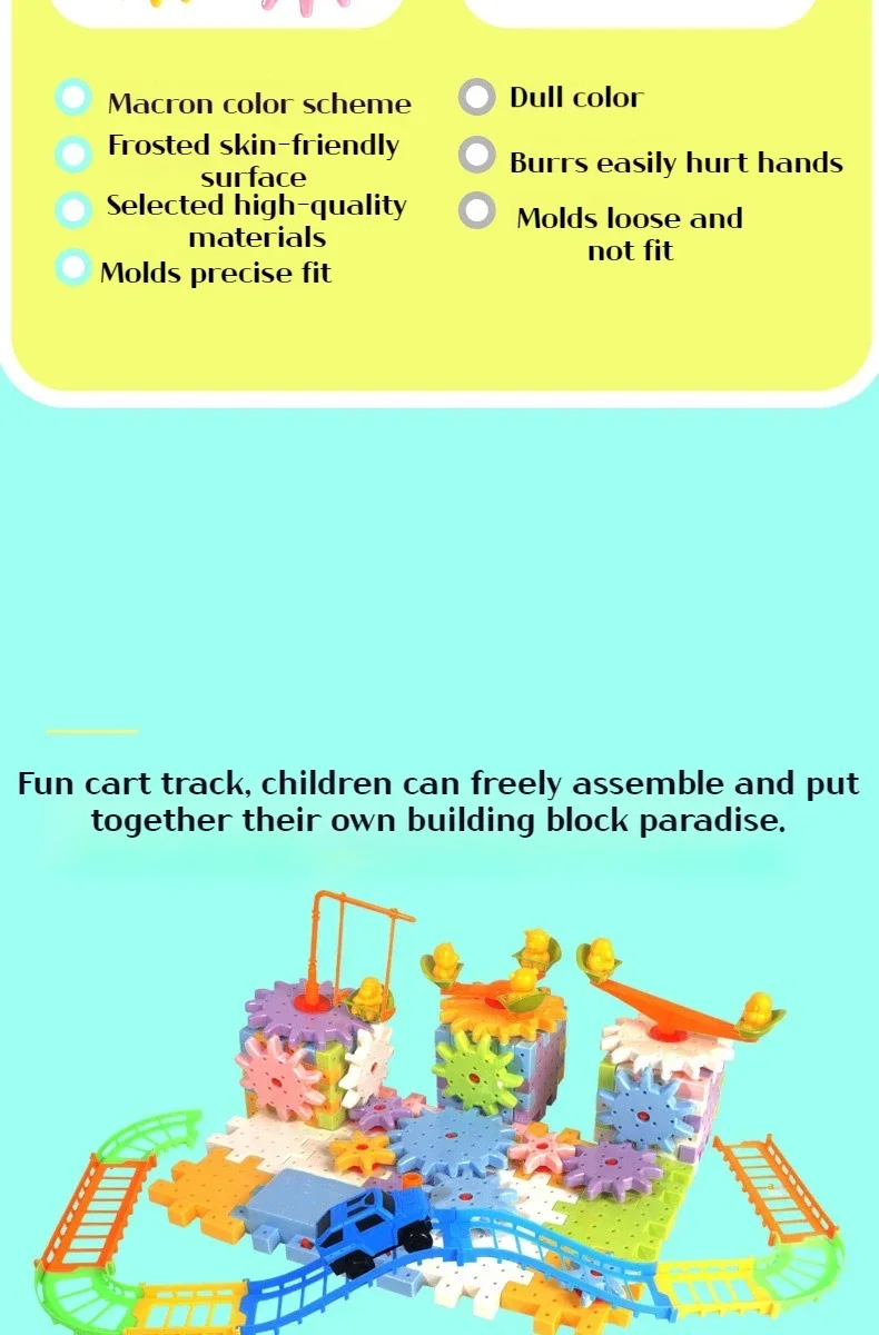 High-quality, non-toxic plastic bricks and electric gear components designed for safe, hands-on play.