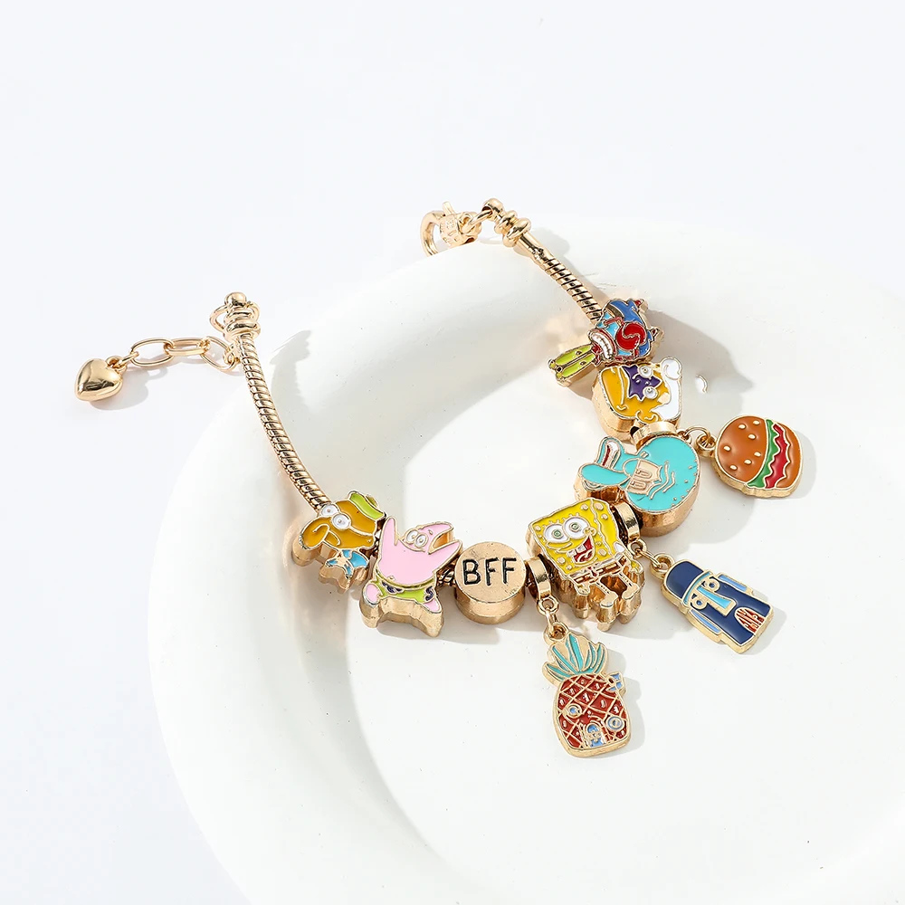 πŸ’– Anime BFF Bracelet – SpongeBob SquarePants & Patrick Star Cartoon Charm for Girls & Women 🎁🧽