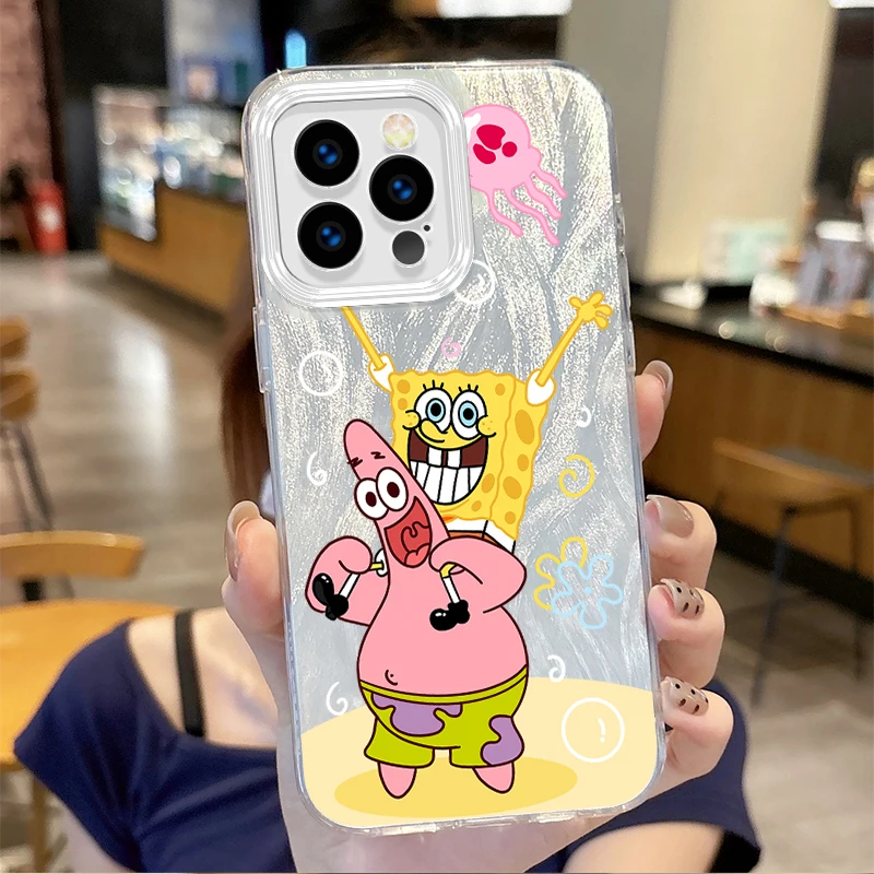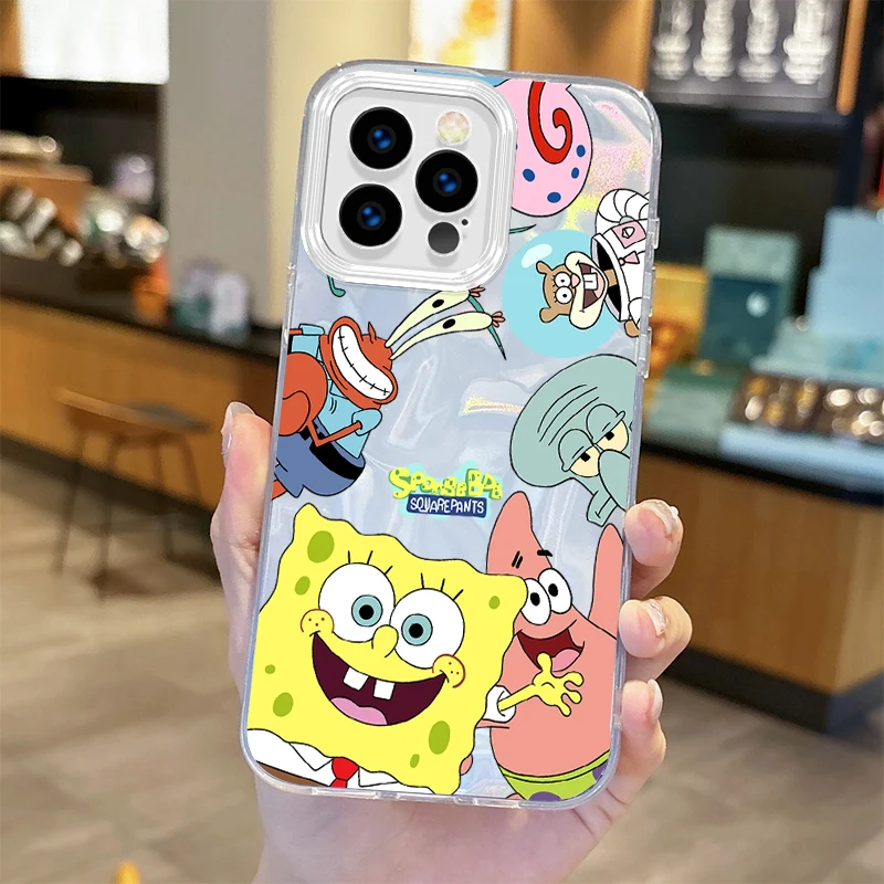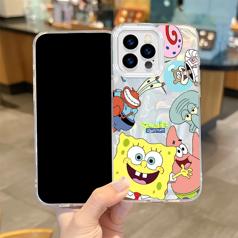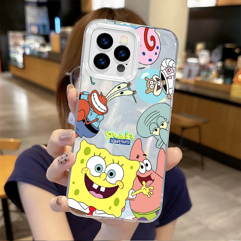 🎨 Fashion S-SpongeBobs Cartoon Gradient Phone Case – Hard Dustproof Back Cover for iPhone Series 📱✨