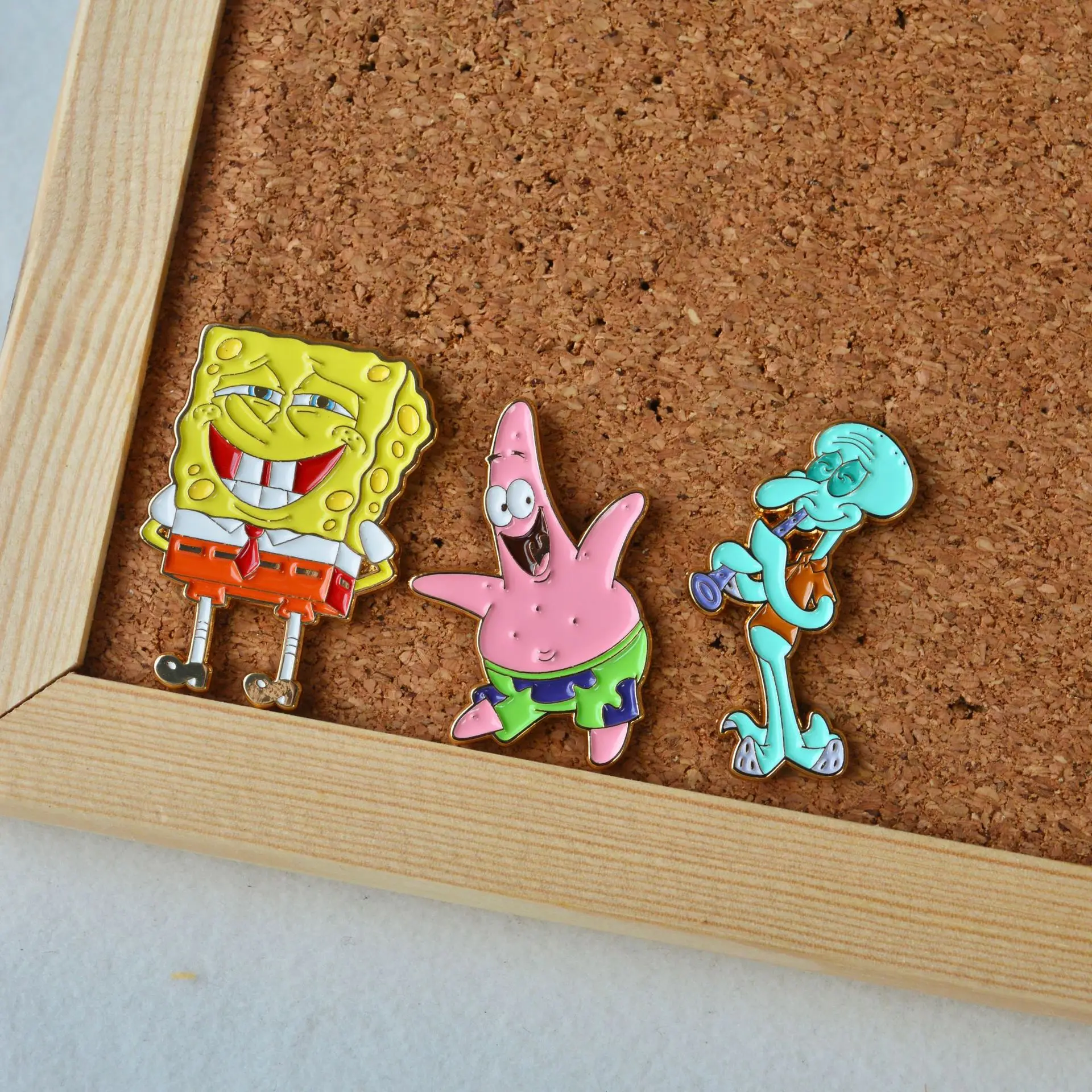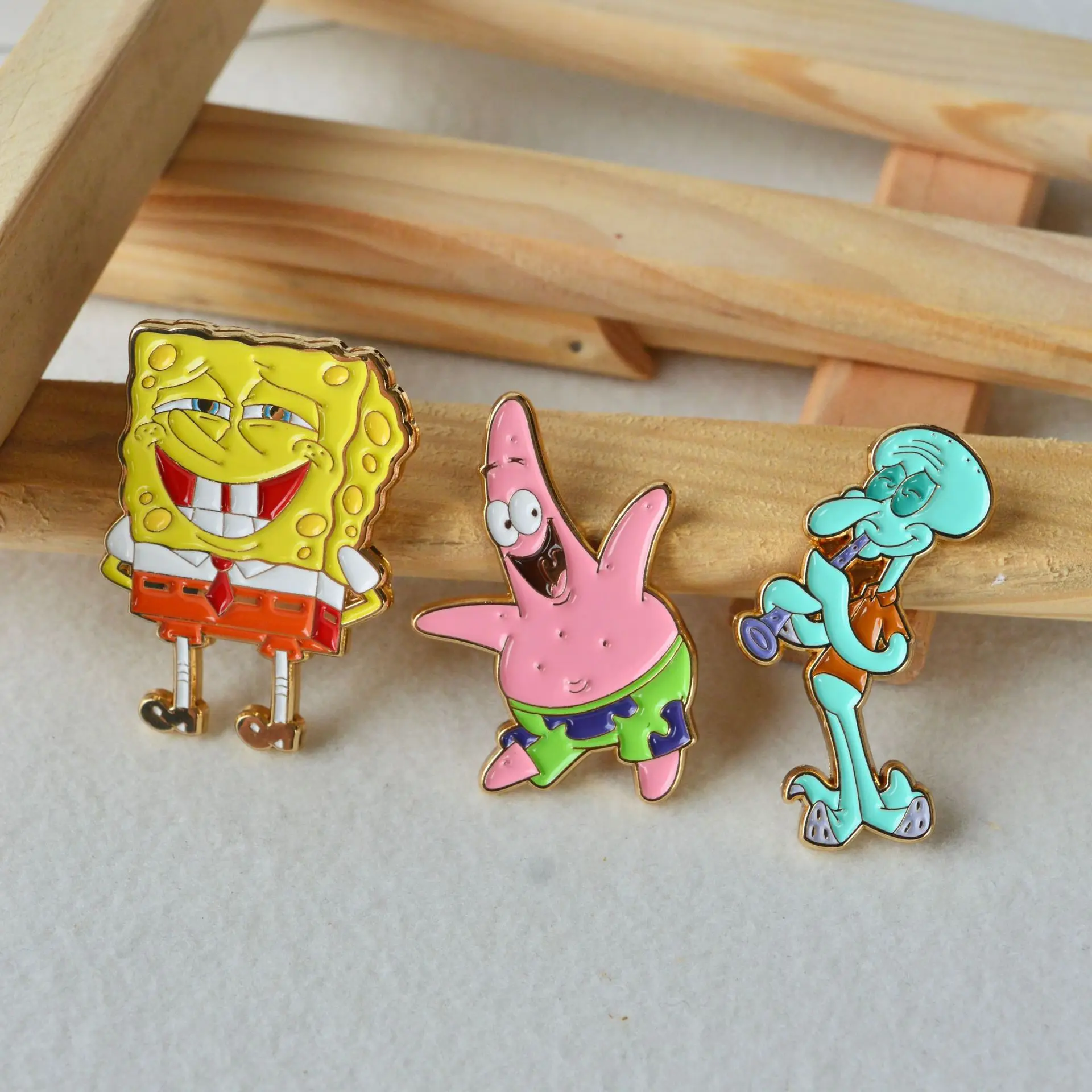 🍥 SpongeBob Enamel Pin Set – Patrick & Squidward Brooch Lapel Pins for Backpacks, Clothing & Accessories 🎒👚