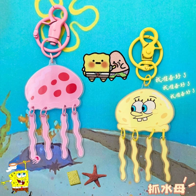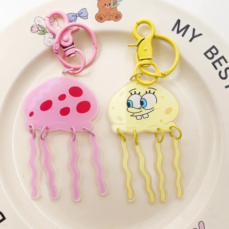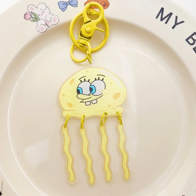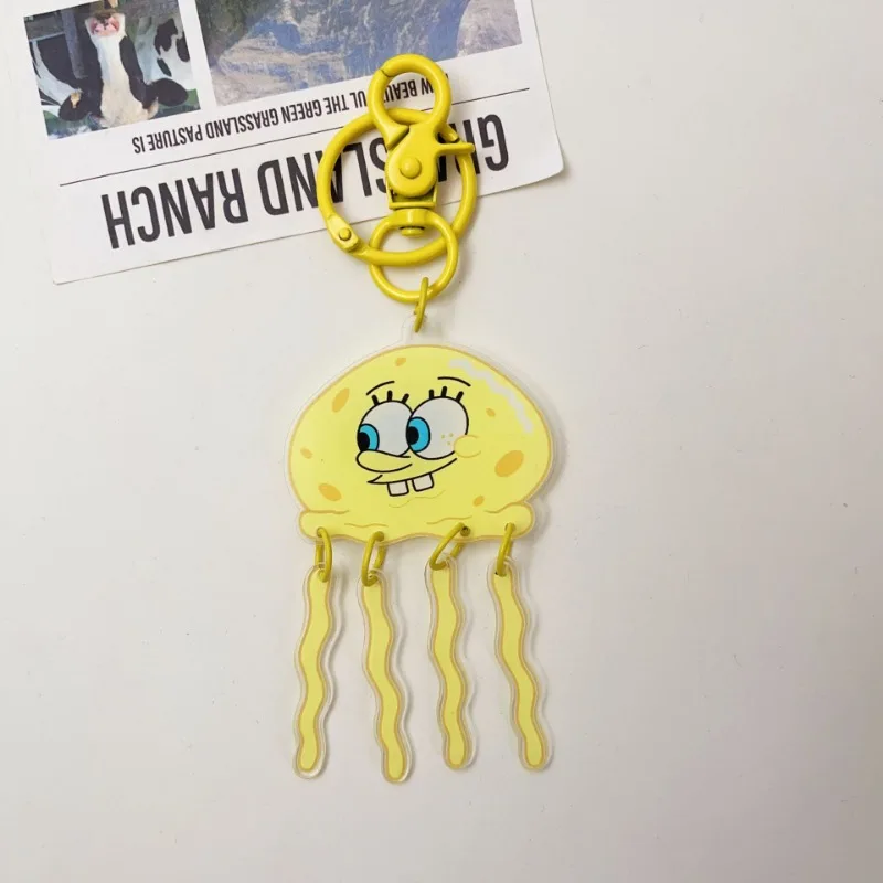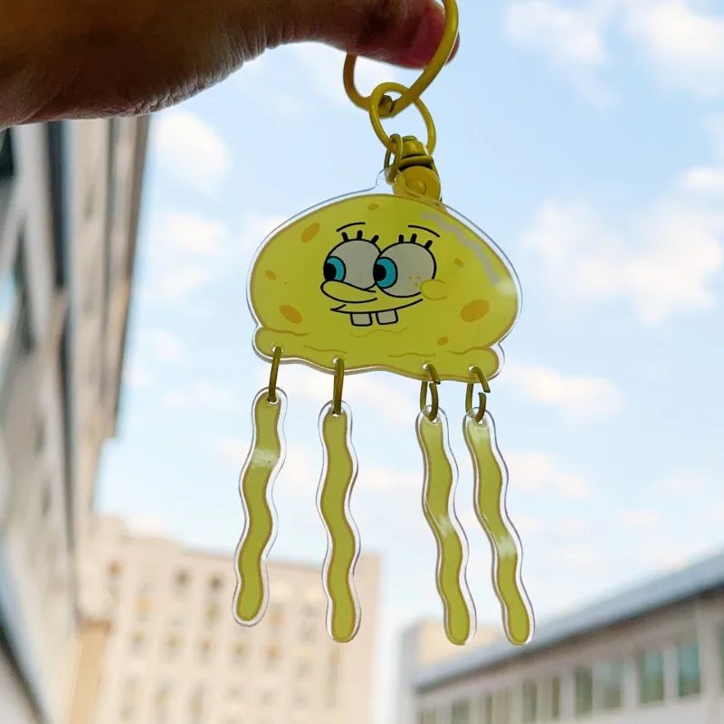🐙 SpongeBob Keychain Pendant – Jellyfish Shaken Acrylic Cartoon Chain Ring for Backpack 🎒✨