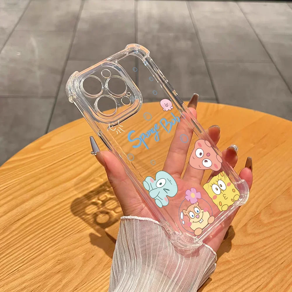SpongeBob SquarePants Anime Soft Silicone Phone Cases for iPhone 16, 15, 14, 13, 12, 11, X, XR, XS, 7, 8 Plus, Pro Max, iPhone 13 Mini ProMax