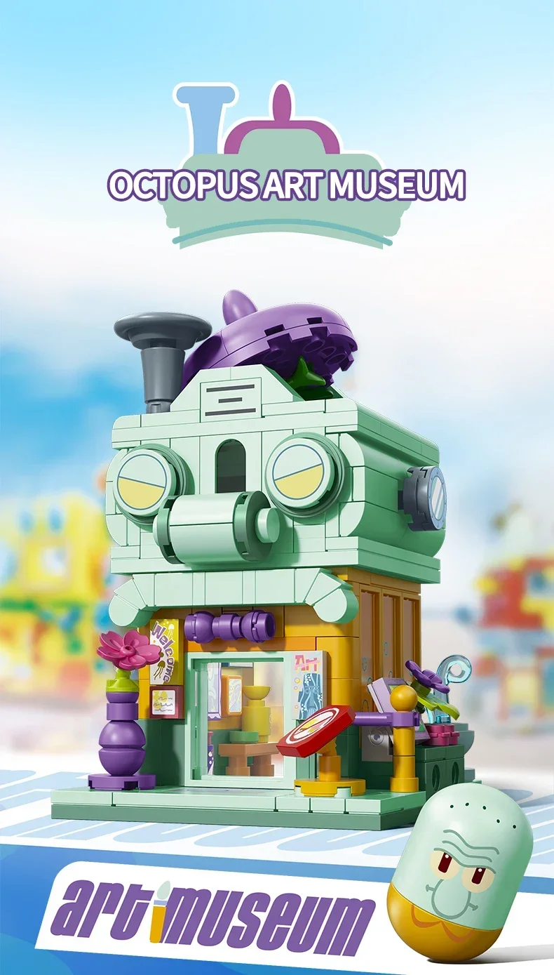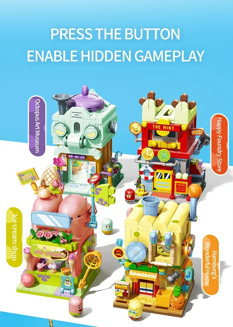 🏠 Includes three classic Bikini Bottom locations: Hamburger House, Ice Cream Shop, and Art Gallery