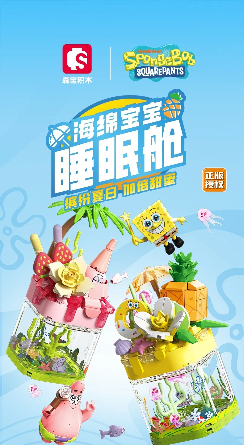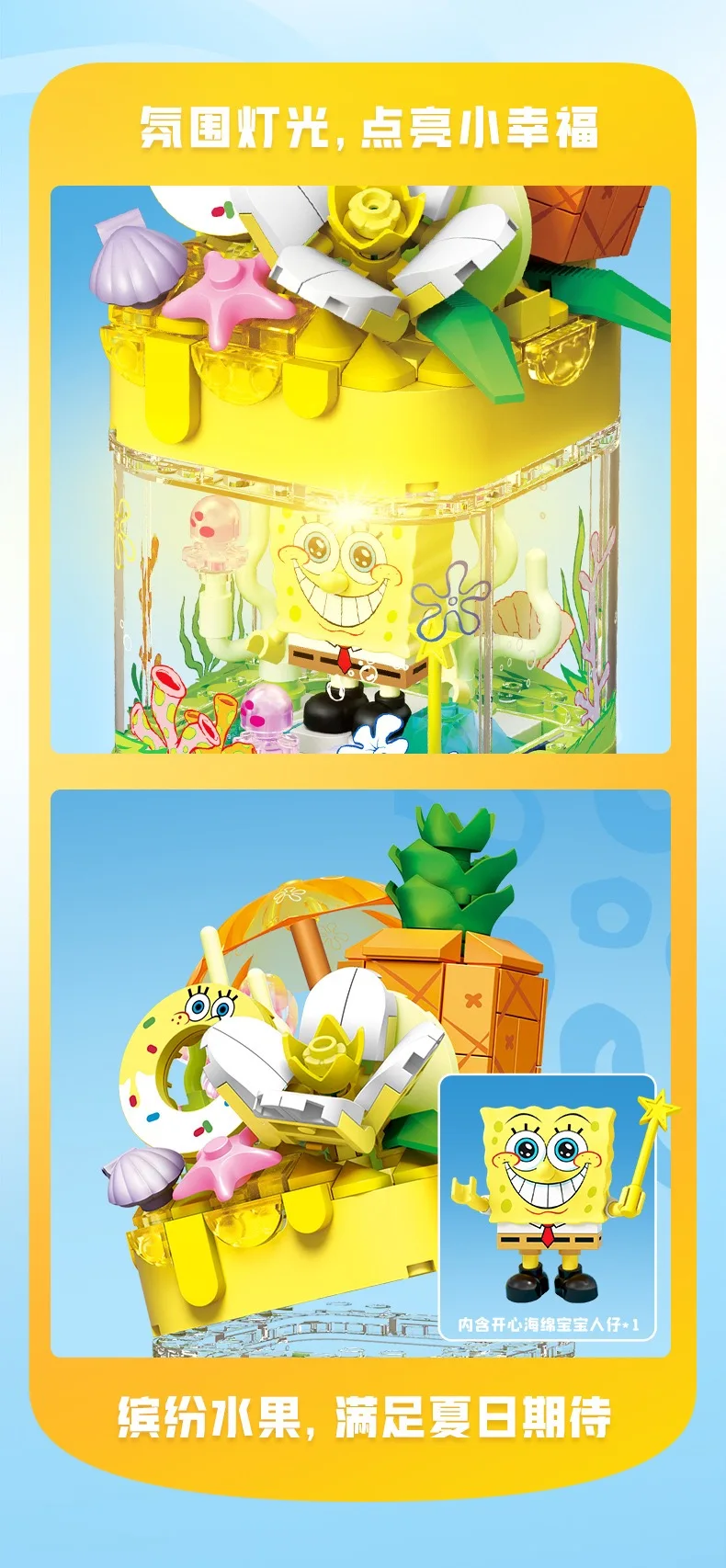 💡 Gentle night light with fun SpongeBob-themed building blocks