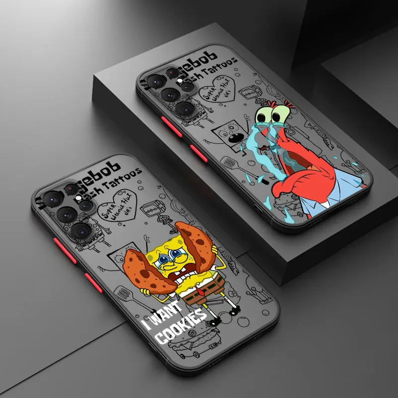 🧽 SpongeBob SquarePants Cute Cartoon Frosted Translucent Phone Case – Compatible with Samsung Galaxy S24, S23, S22, S21, S20 Ultra, Plus, FE, Note 20 & 5G 📱✨