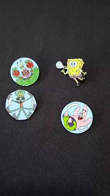 Show off your love for SpongeBob and his friends with this adorable 4-piece enamel pin set — perfect for collecting or gifting to your favorite fan!