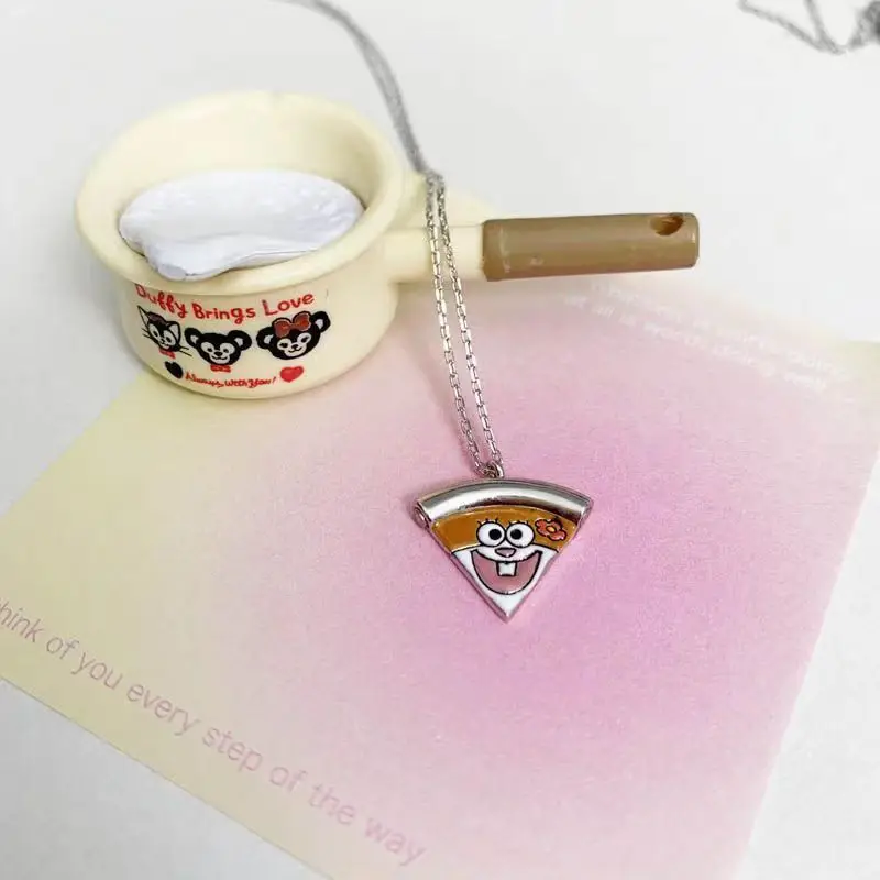 🍥 SpongeBob SquarePants Pizza Necklace – Stylish Anime Alloy Pendant for Youth & Couples 🍕✨