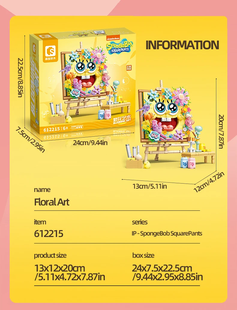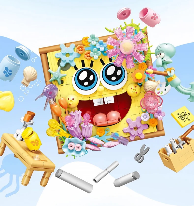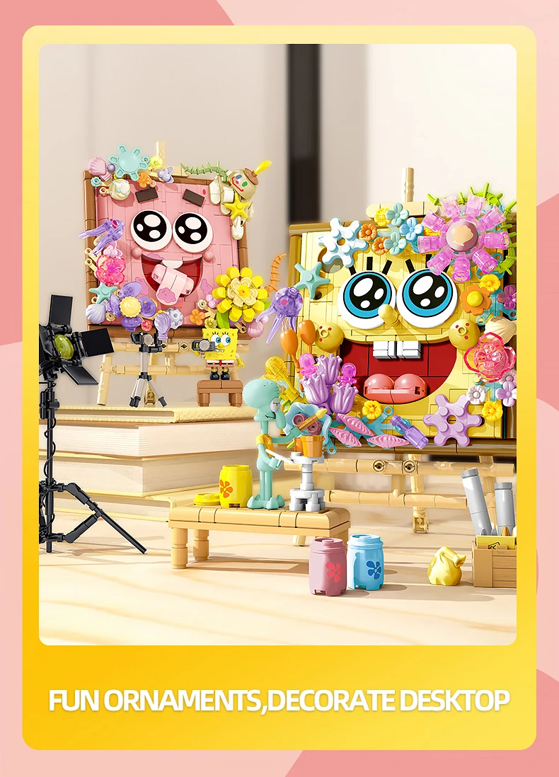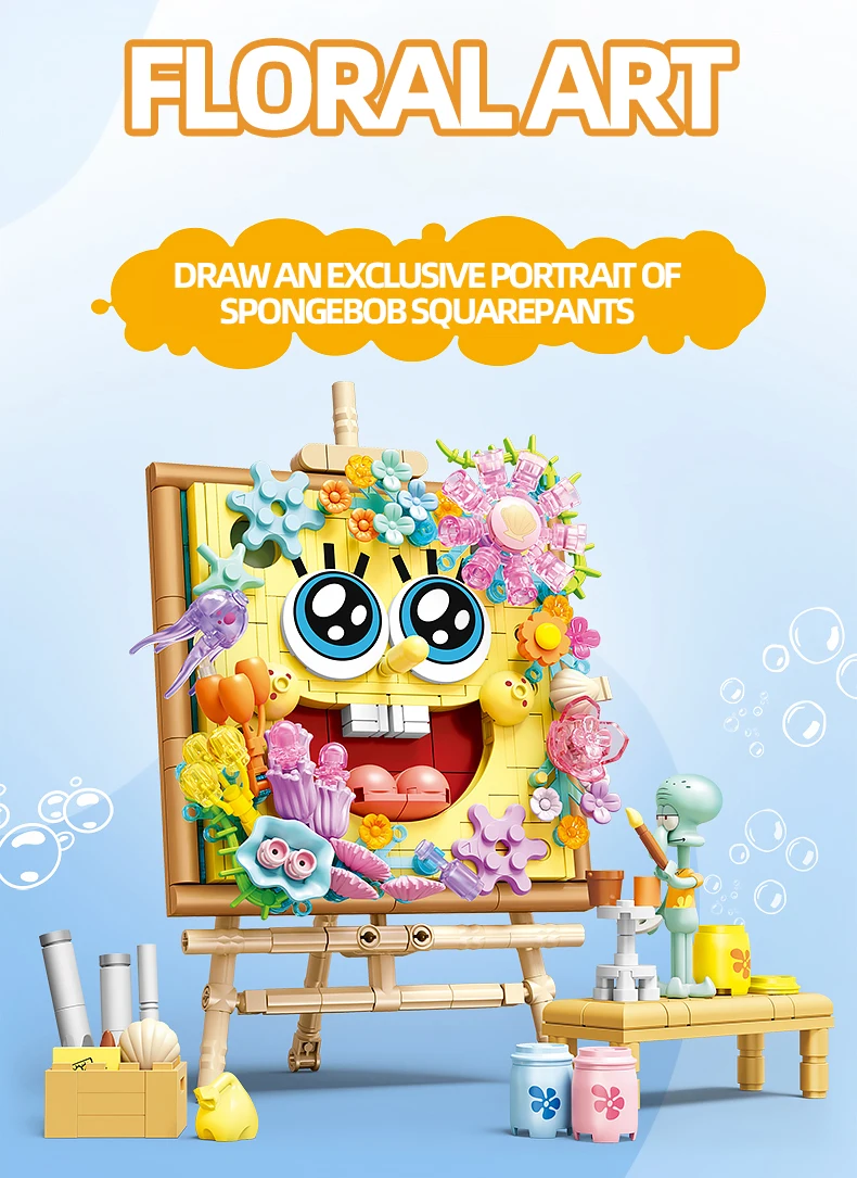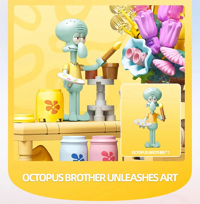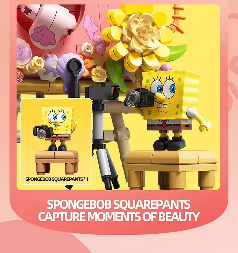 Bring fun and creativity to your space with this SpongeBob SquarePants themed 3D bouquet building block set! A perfect desktop decoration and holiday gift for kids who love building and SpongeBob.